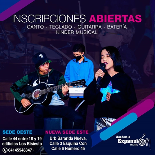 Academia de canto, teclado, guitarra, batería, kinder musical, cursos virtuales online.